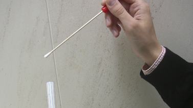 Bastoncillo de toma de muestras genéticas, dentro de su estuche protector. En caso de que el análisis sea de varios individuos (por ejemplo pruebas de paternidad), encontrará la cantidad de bastoncillos solicitada.